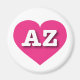 This magnet features a vibrant hot pink heart containing the bold, white, upper case letters AZ, the official abbreviation for Arizona, the Grand Canyon state.