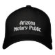 Advertise an Arizona notary public business with style and pride. Makes a great gift for any notary who provides legal services to the public. This white thread design is suitable for black and dark-coloured backgrounds. Easily customised with a wide variety of fonts and thread colours.