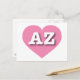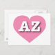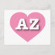 This postcard features a cool, pink heart containing the bold, white, upper case letters AZ, the official abbreviation for Arizona, the Grand Canyon state.