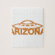 An image of an UFO and the name Arizona. Design with distressed effect.