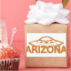 An image of an UFO and the name Arizona. Design with distressed effect.
