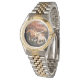 The watch is very nice, the picture is great and the watch looks like quality. The only problem I am having with it is that it is a little too large, and I also can't figure out how to open the clasp. No directions came with it. Very good. The printing is perfect and the watch keeps good time.