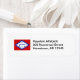 Address details on this label sit to the right of the state flag of Arkansas. Edit the text area to enter your own details before purchasing.