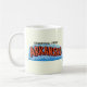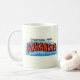 Bright colourful vintage postcard map of the State of Arkansas repurposed on a mug.
