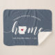 Show some home state pride with this cute rustic blue throw blanket featuring "home" in white calligraphy script lettering with a silhouette map of the state of Arkansas standing in for the letter "O." A red heart illustration inside the state map completes the design; you can change the position of the heart to your home city by opening the design tool and dragging the heart shape to your favourite spot. Personalise with your home city, family name and year established to create a perfect and memorable housewarming gift or addition to your new home.