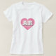 This t-shirt features a calm, cool, and collected pink heart with a white-washed centre containing the bold, white, upper case letters AR, the official abbreviation for the state of Arkansas, the natural state.