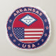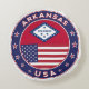 Badge of Arkansas with flag of Arkansas and flag of USA colours, rounded shape.