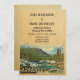 A unique vintage Arkansas wedding invitation in mid-century style featuring a beautiful nature scene with forest trees, snow and a stream river or brook flowing by a small mountain. Celebrate your Arkansas destination wedding with this charming Arkansas wedding invite. Perfect for camping weddings and outdoor ceremonies.