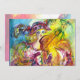 Colourful ,whimsical and vibrant watercolor painting in bright yellow,purple,blue colours inspired from Carnival of Venice .Arlecchina is female counterpart of Harlequin