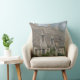 Throw pillow with the Arlington Row, honey-coloured weavers cottages in the morning fog in the town of Bibury, the Cotswolds in England, UK.