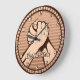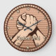 Bronze round medal with two hands in arm wrestling. Custom text.