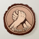 Bronze round medal with two hands in arm wrestling. Custom background colour. Custom text on both sides.