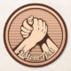 Bronze round medal with two hands in arm wrestling. Custom background colour. Custom text.