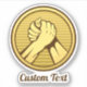Gold round medal with two hands in arm wrestling. Custom text.