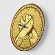 Gold round medal with two hands in arm wrestling. Custom text.