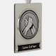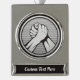 Silver round medal with two hands in arm wrestling. Custom background colour. Custom text.