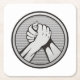 Silver round medal with two hands in arm wrestling. Custom background colour. Custom text.