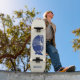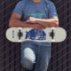Ride in style with this skateboard that's ready personalised with your name or your own custom message. Features a simple and bold illustration of an armadillo in blue against a cream or ivory coloured background.