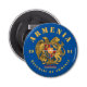 The national coat of arms of Armenia is centered between the country name above, and below, the official name of the country in English. The year of independence is split on either side of the emblem, with the national flag placed just underneath the emblem.