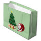 Make every gift feel extra special with this fun New Year gift bag in a beautiful light green color. The design features Santa with his bag of gifts next to a Christmas tree. And on the other side, an Armenian greeting wishing a heartfelt “Happy New Year”. Wrap your gifts in the spirit of the season with this fun, Armenian-inspired design that radiates warmth and sophistication.