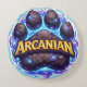 Description add a touch of magic to your gaming set up or living space with this Arcadian round pillow cushion featuring a stunning cosmic paw print design crafted from cracked obsidian stone. It's infused with glowing blue, mystical energy and shimmering starlight. This high fantasy inspired pillow is soft, supportive and perfect for fans of RPG's mythical creatures and other worldly adventure.