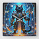 Armoured Cat Warrior in a Mystical Setting Square Wall Clock