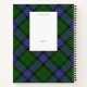 Celebrate your Scottish heritage with this Armstrong clan tartan notebook. The design features a traditional family plaid pattern with a striking colour palette of forest green and navy blue, accented by bold black bands and thin red stripes. This historic Highland aesthetic honours a rich lineage and genealogy, making it an ideal gift for writers or students with ancestral roots. The classic geometric arrangement provides a timeless and professional look for daily journalling, note-taking, or personal organisation.