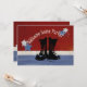 Star Spangled Red White and Blue Patriotic Homecoming Invitation. Boots on the Ground. Customisable military welcome home party with red white and blue stars and combat boots on distressed look patriotic background. Add your own personalised details inside. Celebrate your soldier as deployment ends!