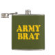 The flask itself is fine. It’s a cheap flask, obviously bought in bulk, however am prepared to overlook that. Given that it is a personalized item, I would have liked to have seen gift boxing instead of the generic packaging. Terrible printing, and/or quality. It’s a cheap, tacky vinyl. It is not cut straight and is also applied in a way that it is overhanging the bottom, causing the glue to catch on items and it will eventually roll and tear, damaging the wrap.
