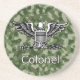 This Coaster is decorated with the Army Colonel collar device and the word "Colonel" on a camoflage background. A great gift idea.