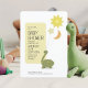 Get ready to celebrate with this adorable Baby Shower Invitation featuring a sweet little dinosaur! This charming design showcases a playful army green polka dot dino, joyfully holding three helium mylar balloons shaped like a sun, moon, and star. The shower details are presented in a fun, modern font, perfectly aligned for easy reading. Plus, the back of the invitation mimics the dino's vibrant colours and patterns, adding a delightful touch. Make your baby shower a memorable event with this enchanting invitation that promises a roaring good time! With its playful design and inviting charm, it’s sure to get everyone in the mood to celebrate the arrival of your little one! Order yours today and let the festivities begin!