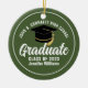 This army green custom senior graduate Christmas ornament features your high school or college name for the class of 2025. Customise with your graduating year under the chic white handwritten script and black grad cap for a great personalised graduation gift.