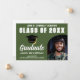 This modern army green custom graduation party postcard and graduate announcement features classy black typography of your military academy or prep school name for the class of 2025. Customise with your graduating year under the chic white handwritten script and black grad cap for great cards. Add your party details on the back.