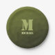 Army green olive geometric mesh pattern Monogram Paper Plate