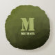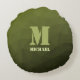 Army green olive geometric mesh pattern Monogram Round Cushion
