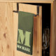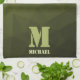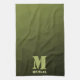 Army green olive geometric mesh pattern Monogram Tea Towel