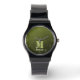 Army green olive geometric mesh pattern Monogram Wrist Watch. Monogrammed Personalised gift watch accessory for him with your custom initial and name. Army green olive gradient geometric mesh pattern. Army green gradient geometric mesh pattern triangles ombre. Army green dark olive hue for soldier gear, camo. It mimics natural military landscapes, toughness, endurance, resilience. Earthy undertones connect to nature, grounding. Symbolises military legacy, outdoor utility.