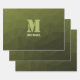 Army green olive geometric mesh pattern Monogram Wrapping Paper Sheet