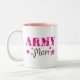 This design features pink camouflage ARMY stencil text, with a girly black font that says "Mum," with lots of pink stars around. Customise this design to make it your very own!