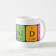 Arnaldo spelled out as Ar N Al D O (Argon Nitrogen Aluminum Deuterium Oxygen) on a mug for the scientist in you.