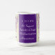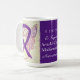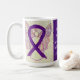 Arnold-Chiari Malformation uses a purple awareness ribbon to show support for its awareness. This custom mug features purple awareness ribbon guardian angel art paintings with the message "I Hope and Support Arnold-Chiari Malformation Awareness!" The custom purple awareness guardian angel ribbon art picture coffee cups or mugs can be customised with personalised messages to make great cause mugs for awareness fundraisers, awareness cup gifts, or other special events or cause support occasions. Make your own customised words for a personal message of hope and support to share!
