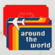 around the world retro stripes invitation