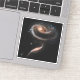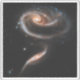 Arp 273 interacting galaxies in Andromeda. The larger of the two galaxies, UGC 1810, shows a large spiral galaxy with a disc that is distorted into a rose-like shape by the gravitational tidal pull of the companion galaxy below it, known as UGC 1813. A swath of blue jewel-like points across the top is the combined light from clusters of intensely bright and hot young blue stars. These massive stars glow fiercely in ultraviolet light. The smaller, nearly edge-on companion shows distinct signs of intense star formation at its nucleus, perhaps triggered by the encounter with the companion galaxy.