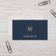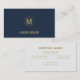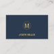 An eye-catching, minimalist design with a simple circular array in gold to hold your monogram above your full name. An optional, textured-look background with a dark blue linen effect has been provided; delete this layer and choose any solid color background if preferred. A template is provided to add complete contact information on the back. Some occupations this card would be suitable for are: