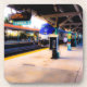 Calling all train lovers! The original photograph by ZoeSPEAK on this set of six Coasters features a sleek blue engine pulling a train into the railroad station on Track 2. The red tile roof of the opposite platform and a palm tree can be seen in the bright tropical light.