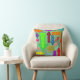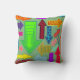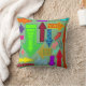 This throw pillow has a design of arrows in various colors with different patterns on them.