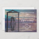 A wedding invitation printed on a magnetic card. Use your own photo and add the details for your wedding. There's a transparent purple gradient on the design, so this works best with a photo that goes well with purple, and with a darker background on the right-hand side.