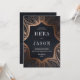 Art Art Nouveau charcoal and Bronze Invitation faux metallic Wedding stationery, a beautiful gilded design, with intricate patterns bordering a striking text. Perfect for drama with a hint of gothic luxury. Charcoal, Dark emerald and gray backgrounds, with a choice of foil effect details. The suite pairs well with crisp white envelopes and matching belly bands, or for added luxury choose one of the complimentary envelopes for a maximum effect. See the whole matching suite here https://bit.ly/2GX1wCJ