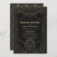 This chic Art Deco 1920's style bridal shower invitation features a black background with a lion and geometric designs in faux/fake gold. The reverse side features a gold background with geometric patterns. Personalize it for your needs. You can find matching products at my store.