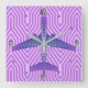 Art Deco Aeroplane, Violet Purple and Silver Grey Square Wall Clock